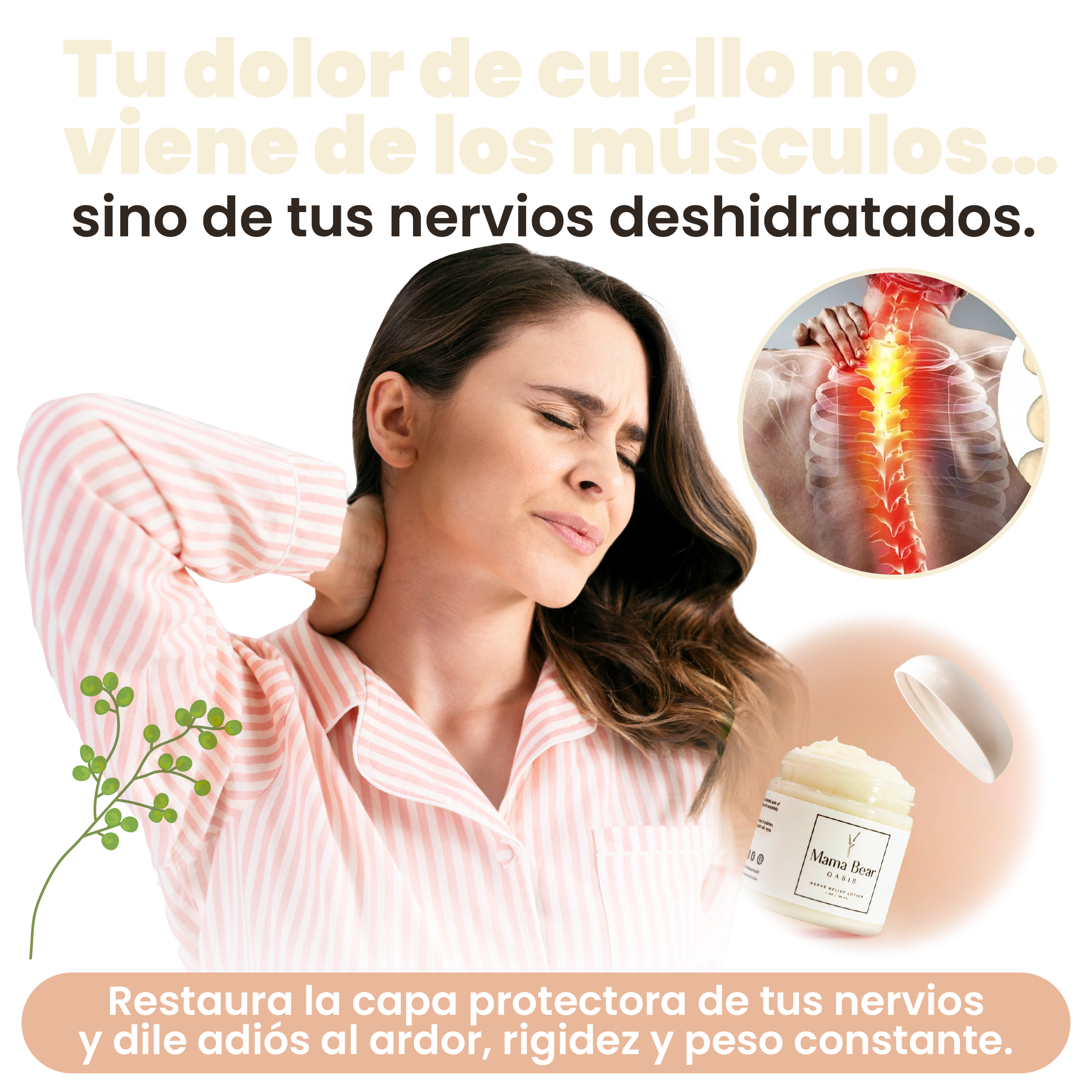 El verdadero origen del dolor cervical no está en la postura ni en el estrés, sino en tus nervios resecos. Cuando pierden magnesio y su capa protectora, generan microchoques eléctricos que causan punzadas, ardor y rigidez. Por eso los masajes o analgésicos no sirven: el problema está dentro de tus nervios.”