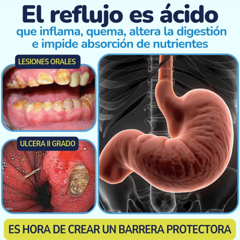 El reflujo constante irrita la mucosa gástrica, debilita el esfínter esofágico y genera ardor, inflamación y dolor recurrente. Neutralizar el ácido no repara el daño. Sin protección, el estómago sigue expuesto, alterando digestión, descanso y absorción de nutrientes.