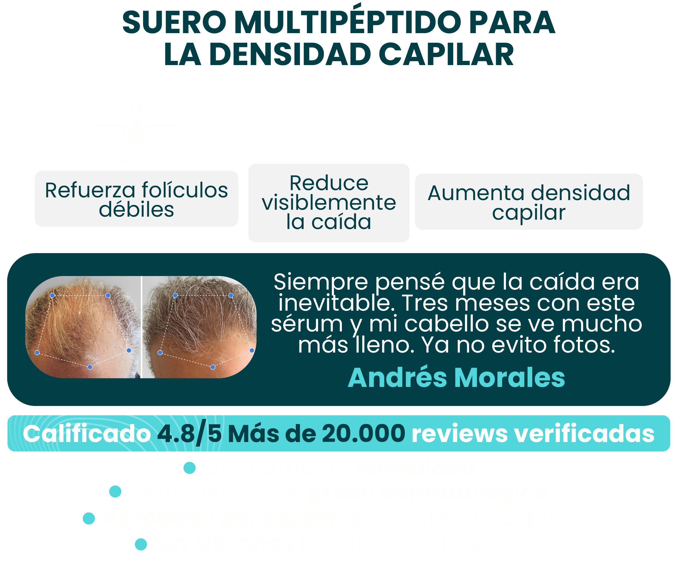 Este sérum clínico con péptidos de última generación está diseñado para combatir la caída y fortalecer el cuero cabelludo masculino.